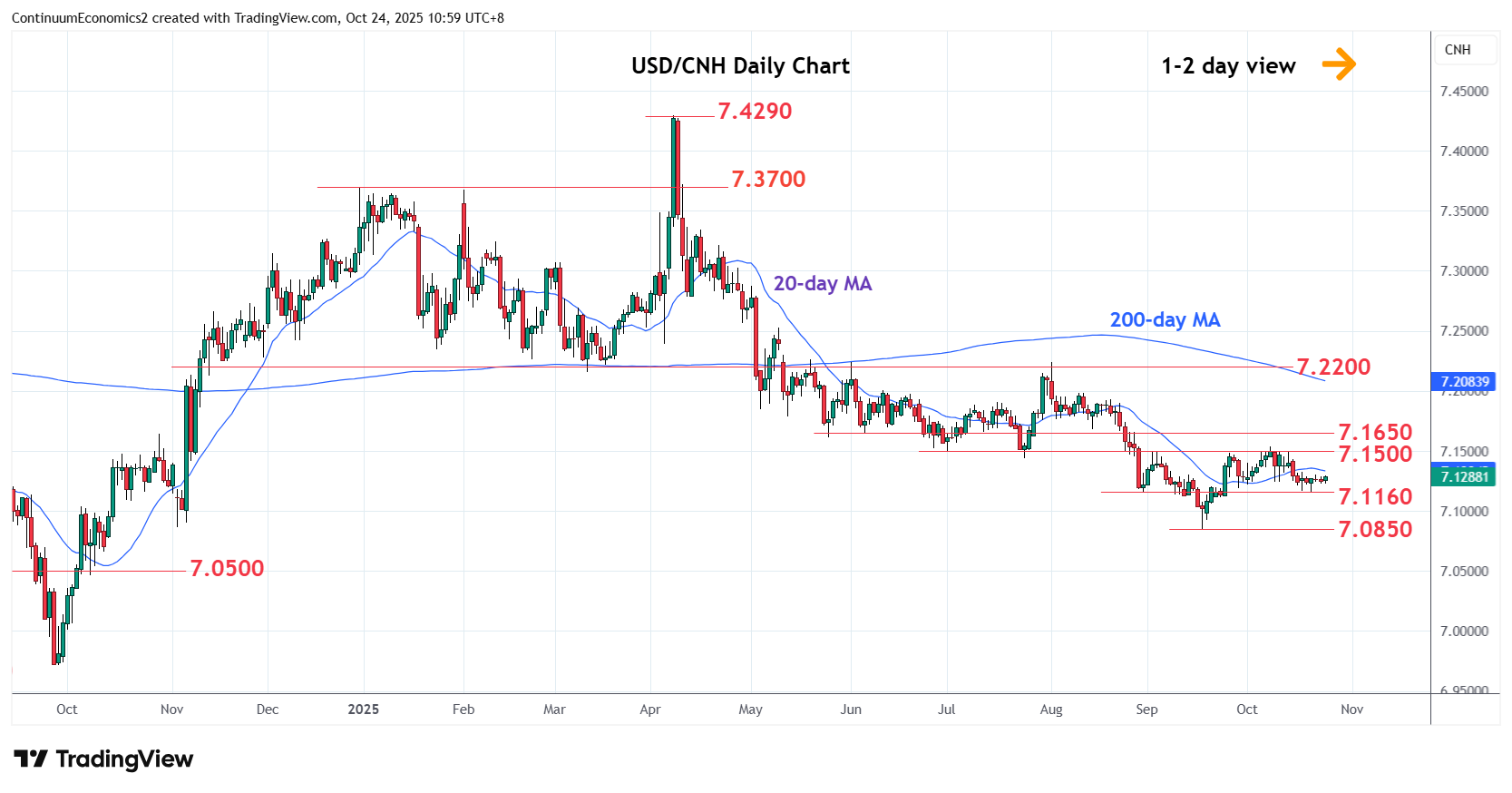 | R1 | 7.1500/35 | ** | congestion, 8 Oct high | S4 | 7.0800 | * | 76.4% Sep 2024/Apr rally |