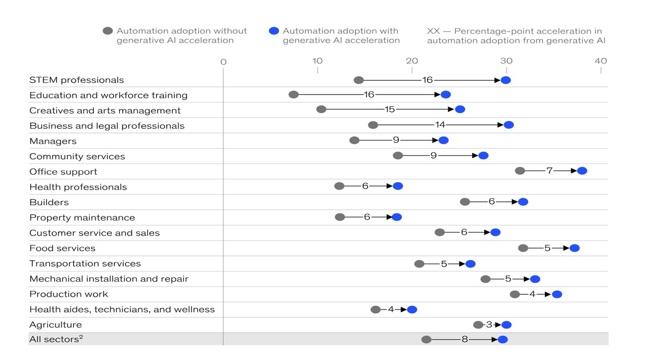 Figure 2: 2030 Automation Adoption U.S. (%) Source: McKinsey 2023 (here)