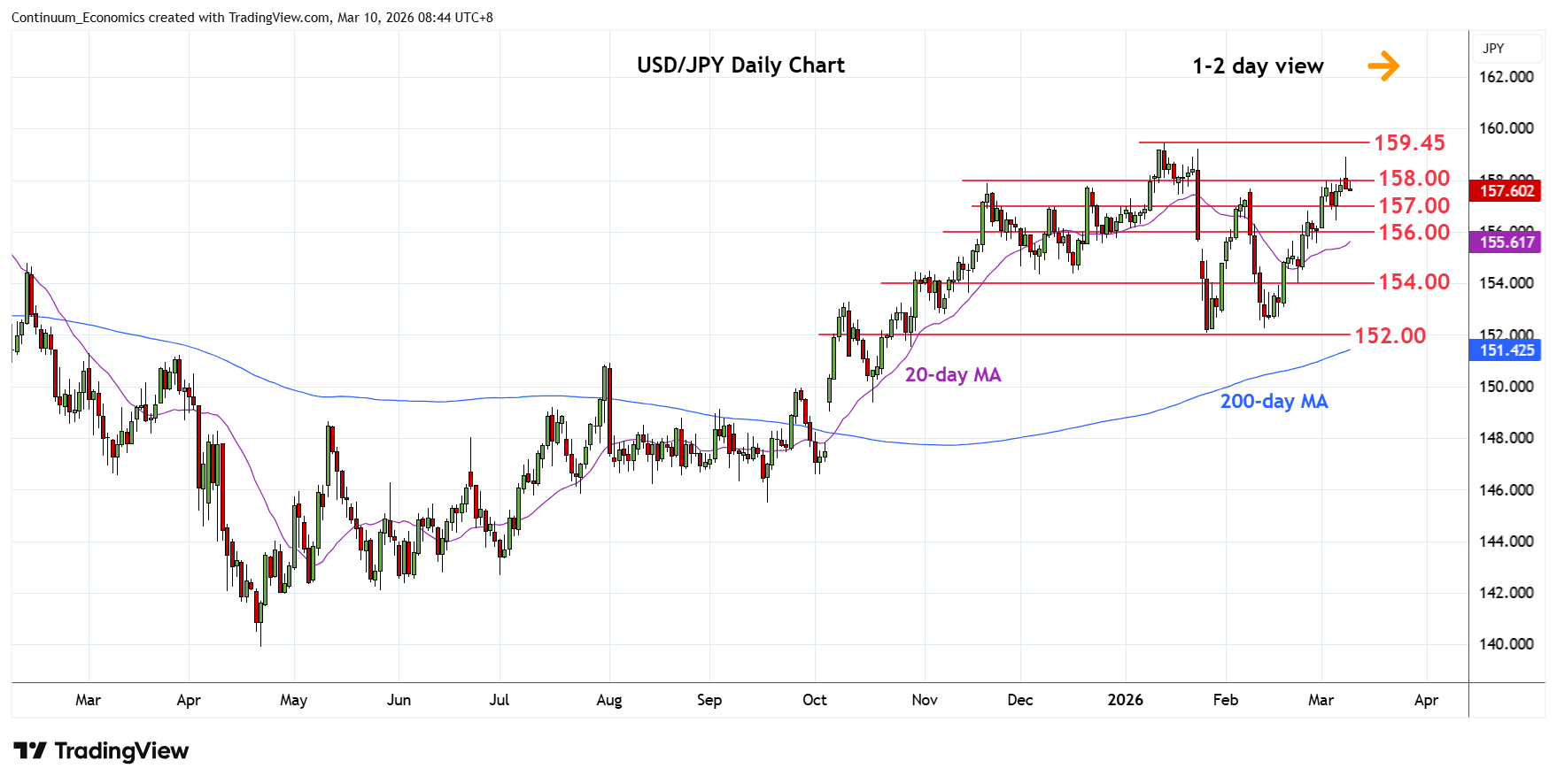 Chart USD/JPY Update: Settled back to consolidation below 158.00