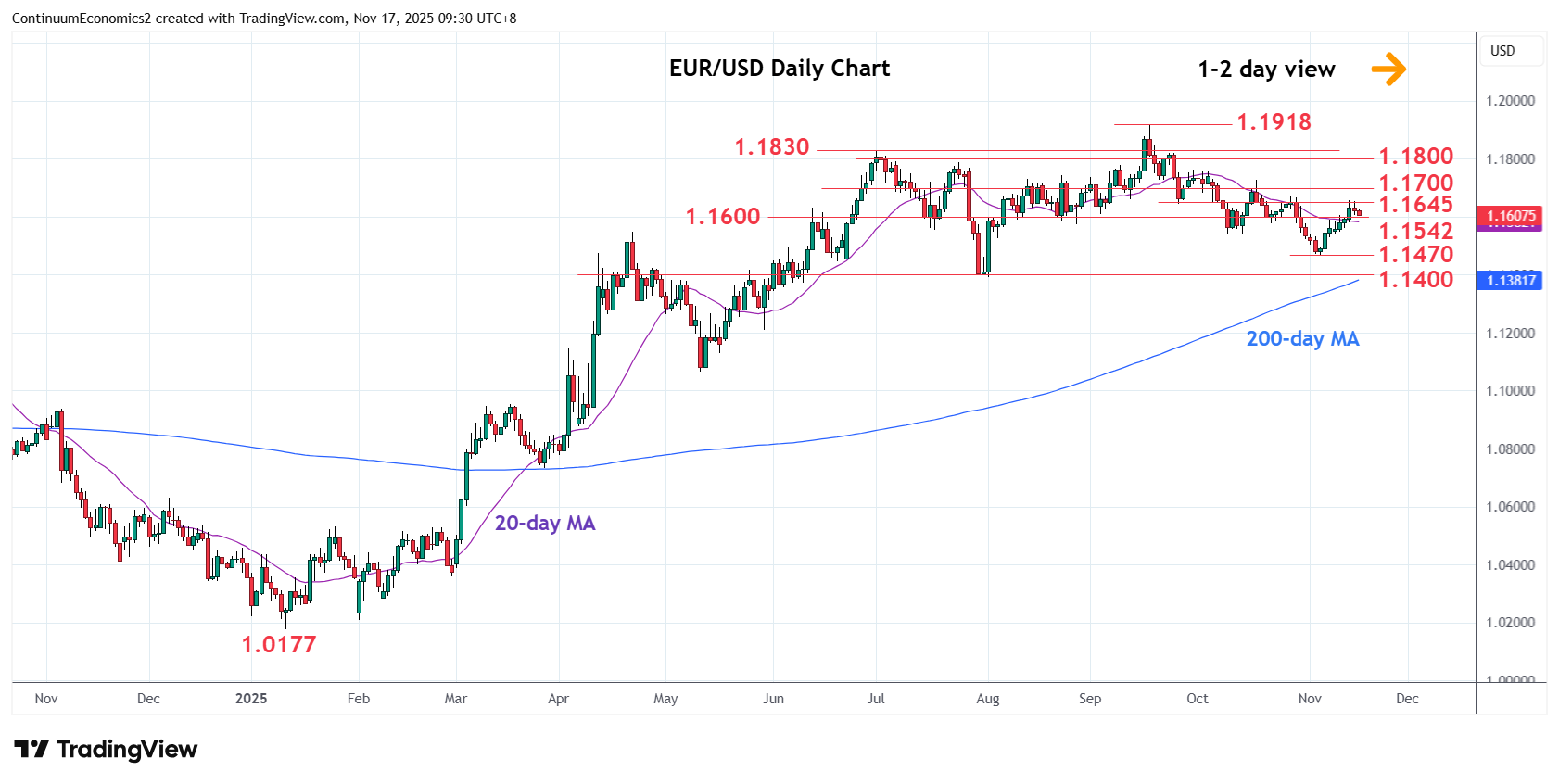 Chart EUR/USD Update: Lower in consolidation from 1.1645 resistance
