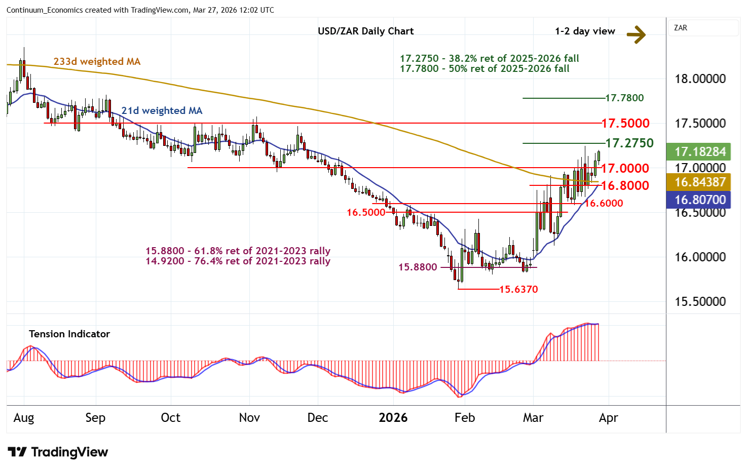 Chart USD/ZAR Update: Approaching strong resistance at the 17.2750 Fibonacci retracement