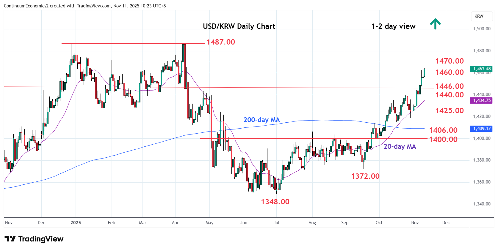 Chart USD/KRW Update: Extending gains, but stretched