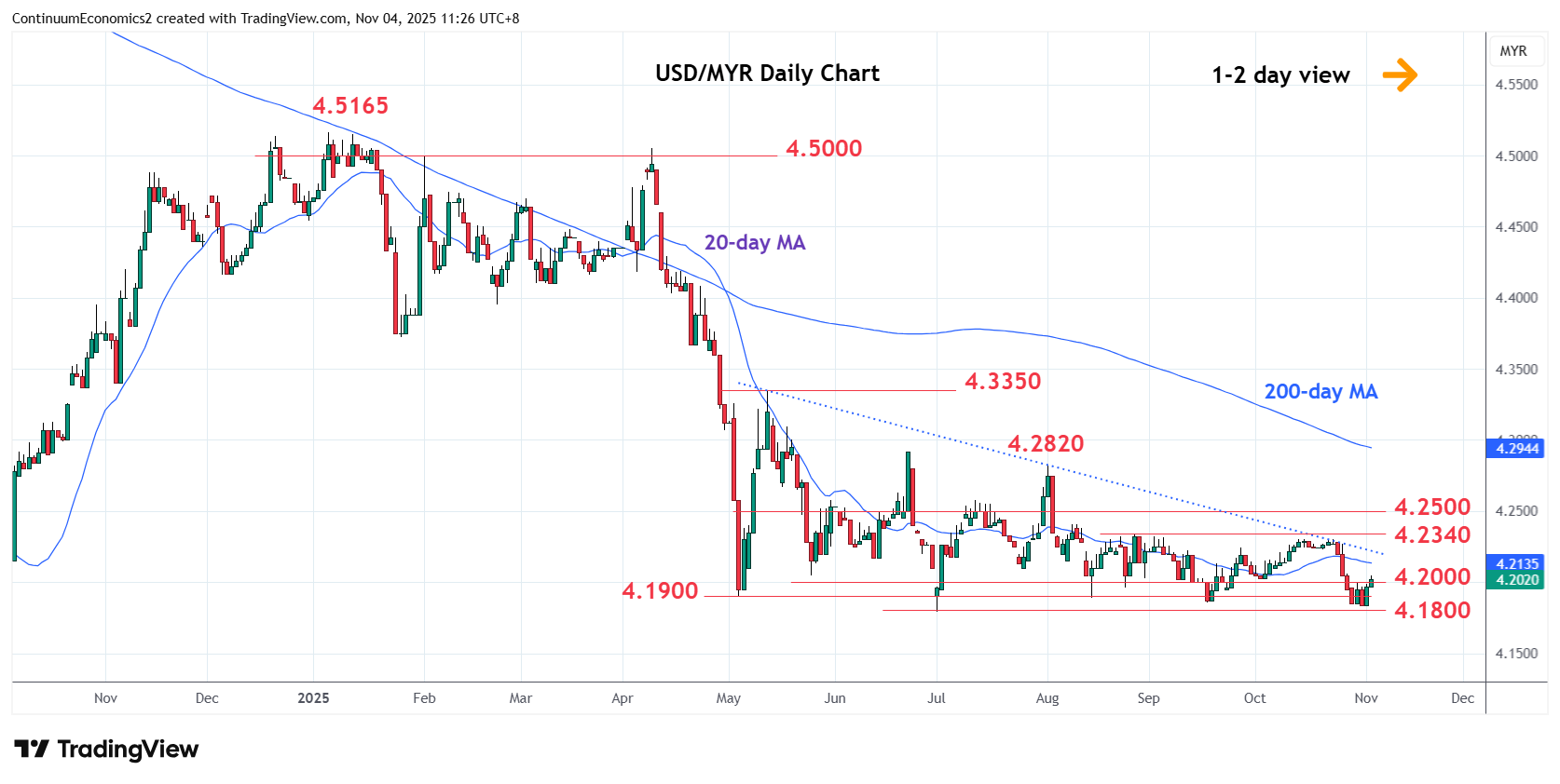 Chart USD/MYR Update: Higher in consolidation from 4.1900/4.1800 lows