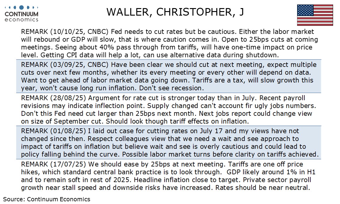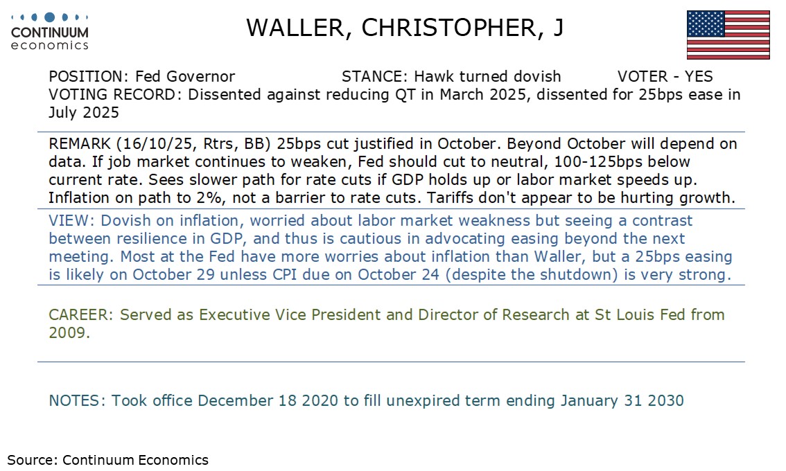 U.S. Fed's Waller - 25bps easing justified in October, after that will depend on data