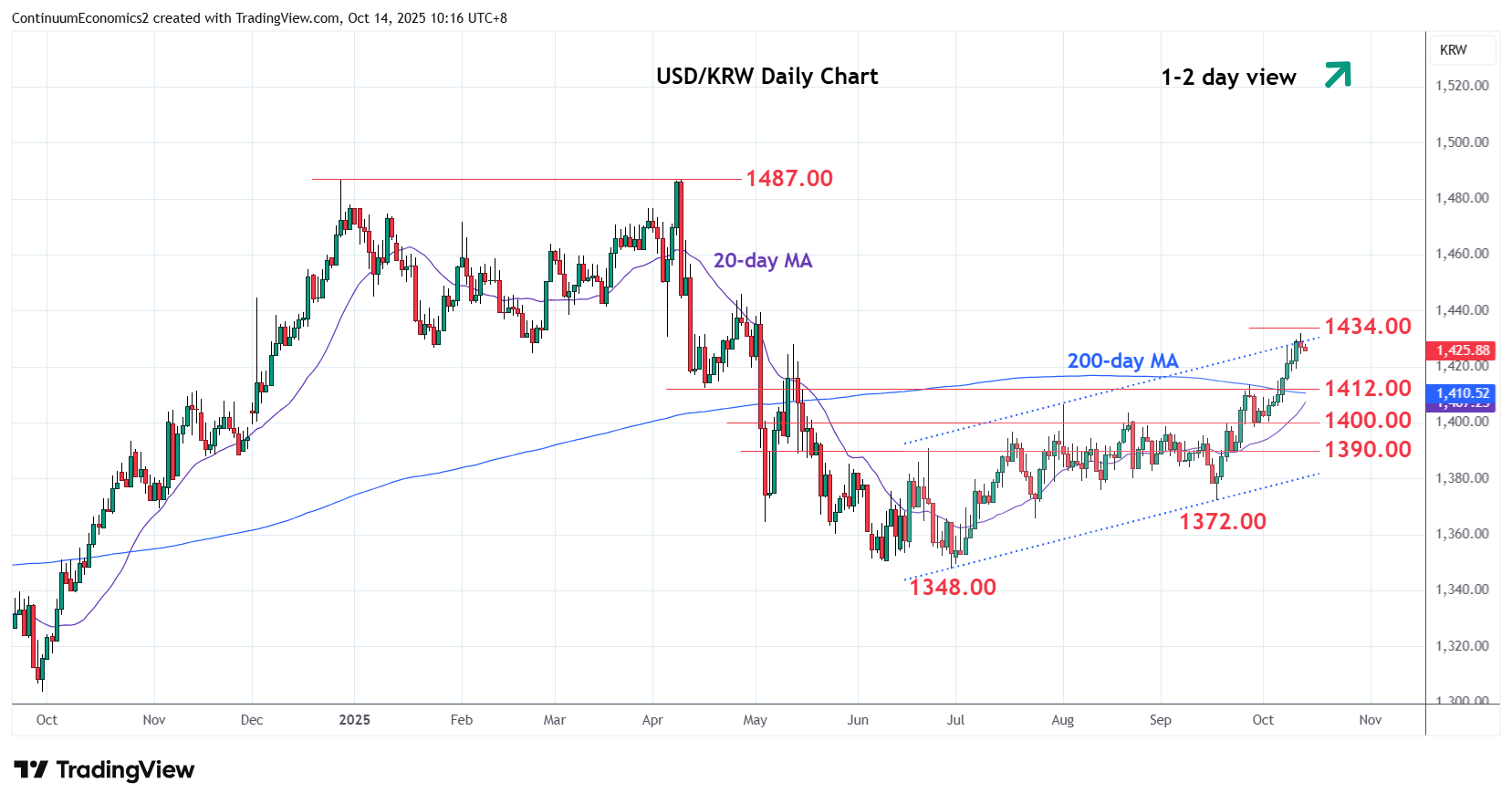 02:20 GMT - Limited on break above 1430.00 as prices settled back from the 1432.00 high to unwind overbought daily studies. Pullback see support starting at the 1420.00 congestion then the 1414.00/1412.00 area which is expected to underpin. Failure here will ease the upside pressure and open up room for pullback to the 1400.00 congestion. A later break of the 1432.00 high, if seen, will see room for extension to the 1434.00, 61.8% Fibonacci level. Higher still, will turn focus to resistance at the 1440.00/1446.00 area.
