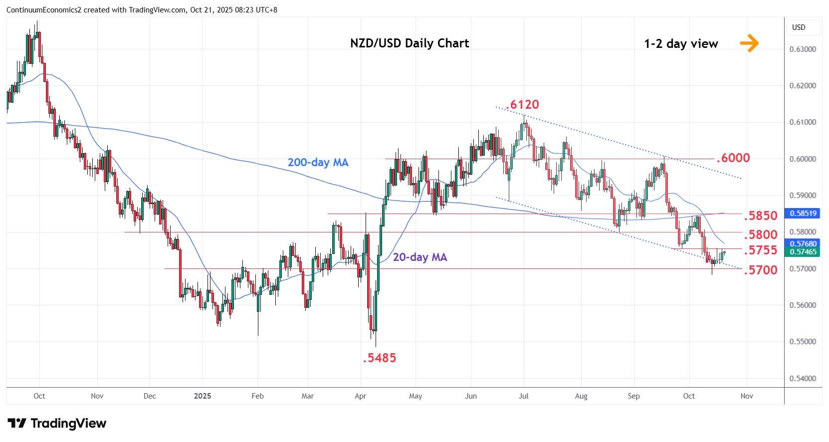 Chart NZD/USD Update: Higher in consolidation to pressure .5755 resistance
