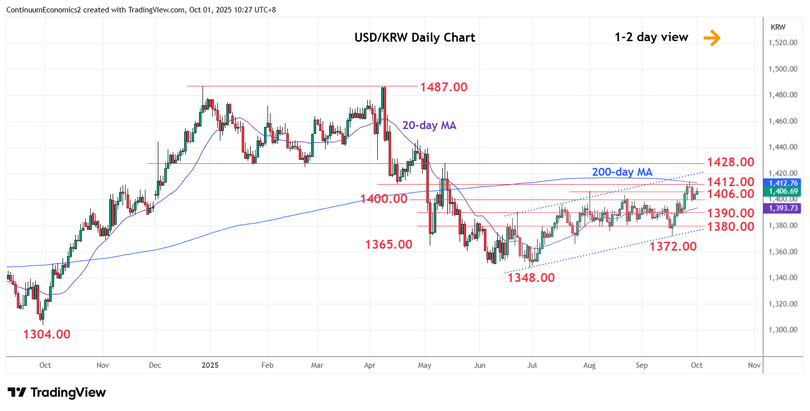 Chart USD/KRW Update: Consolidating rally from 1372.00, September low