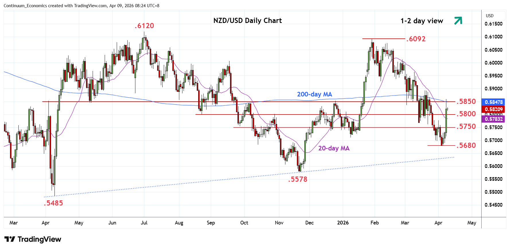 Chart NZD/USD Update: Consolidating test of .5850 resistance