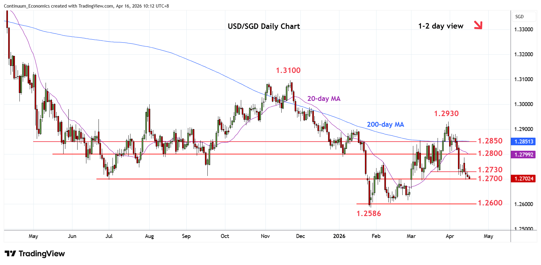 Chart USD/SGD Update: Weighing on 1.2700 support
