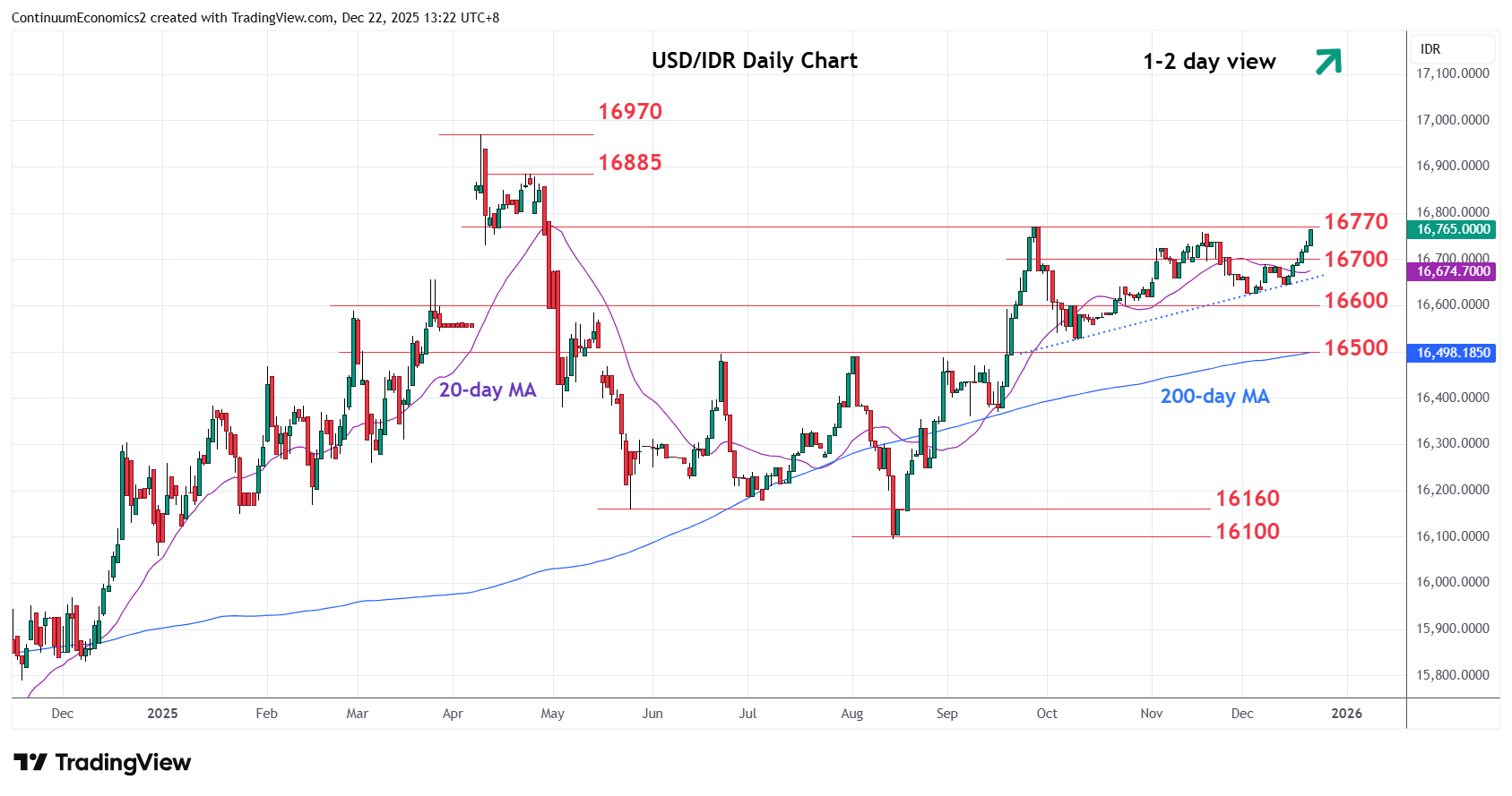05:30 GMT - Extend break of the 16690/16700 resistance to retest the 16760/16770, November/September highs. Break here will extend the broader gains from the 16100, August current year low. Clearance will see room for extension to resistance at 16885 then the 16970, 9 April current year high. Meanwhile, support is raised to 16700/16690 congestion and 8 December high which should now underpin. Would take break to fade the upside pressure and open up room for deeper pullback to support at the 16625/16600 congestion.