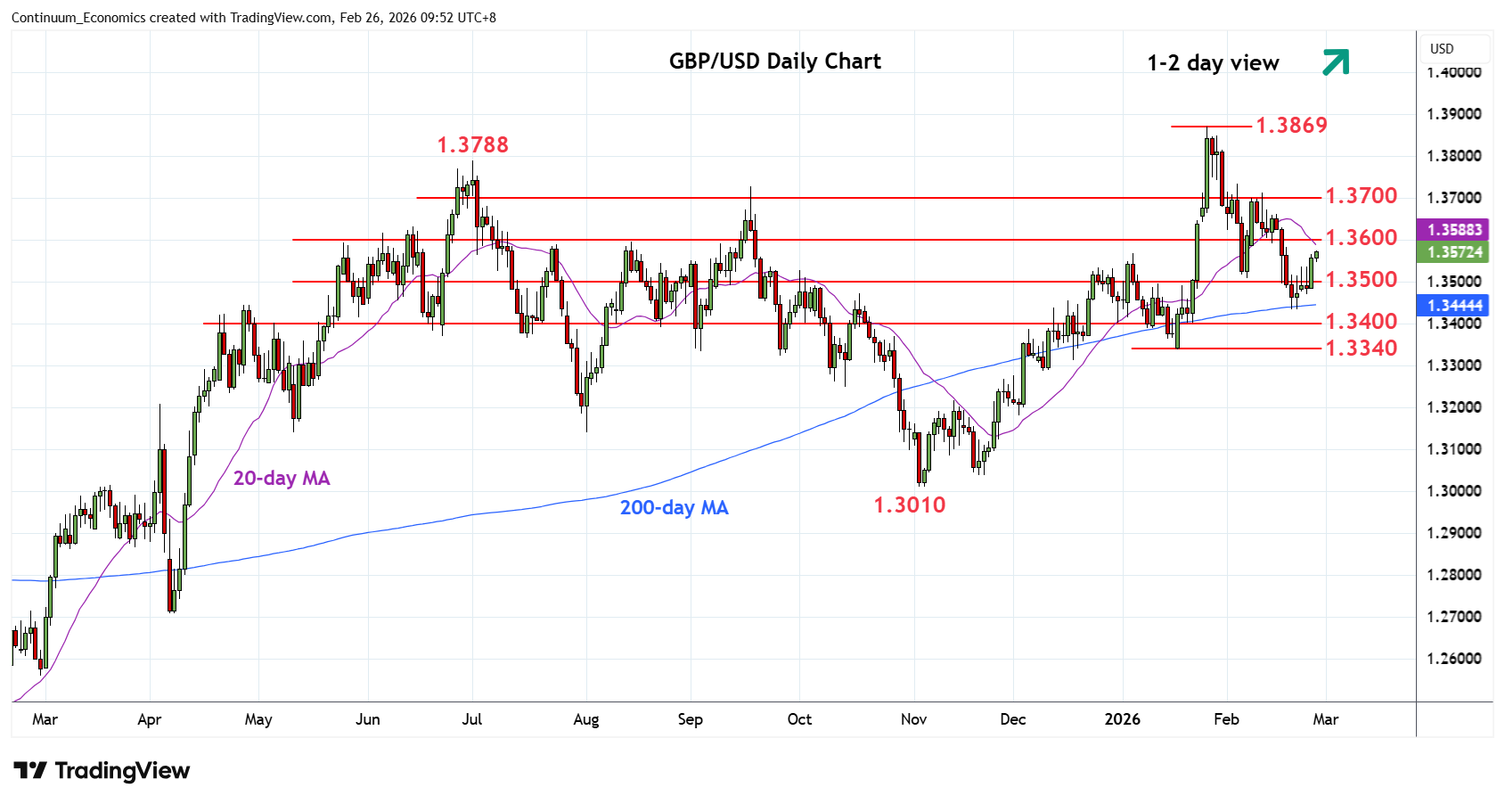 | R1 | 1.3600/20 | ** | congestion | S4 | 1.3340 | ** | 19 Jan YTD low, 61.8% |