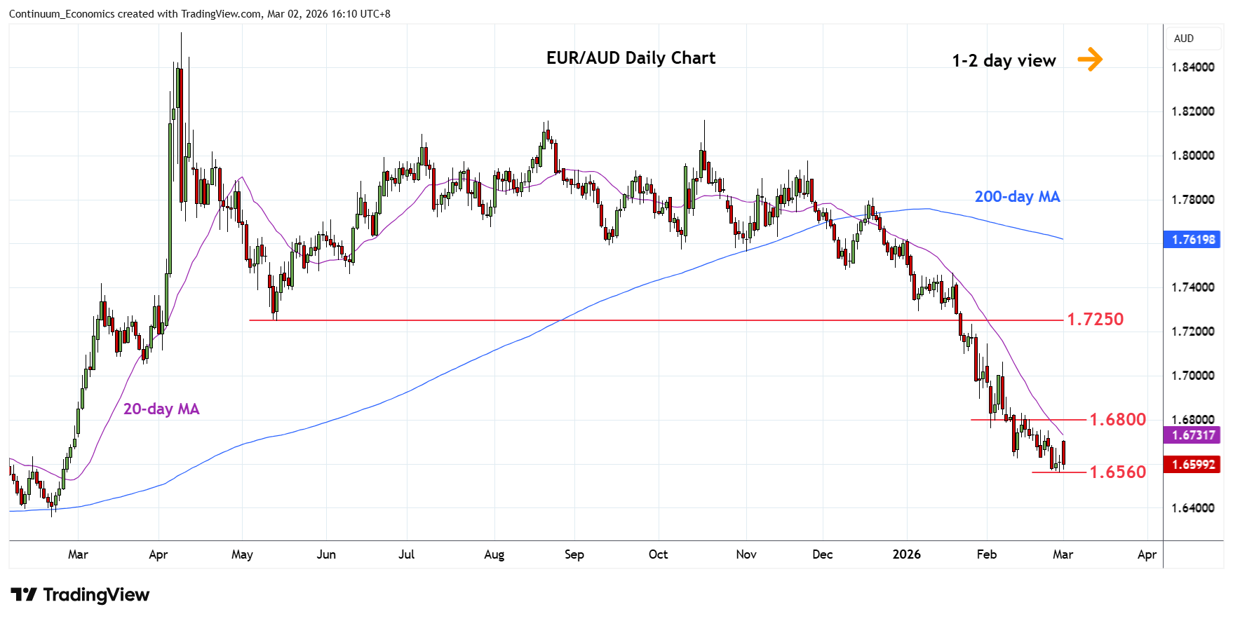 | R4 | 1.7000 | * | figure, congestion | S1 | 1.6560 | ** | 27 Feb YTD low | |