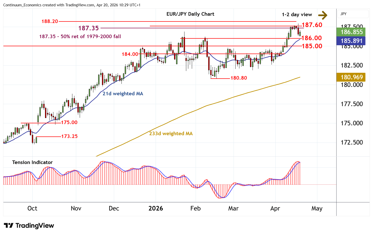 | R3 | 187.95/00 | * | 17 Apr YTD high; figure | S2 | 186.00 | * | congestion | |