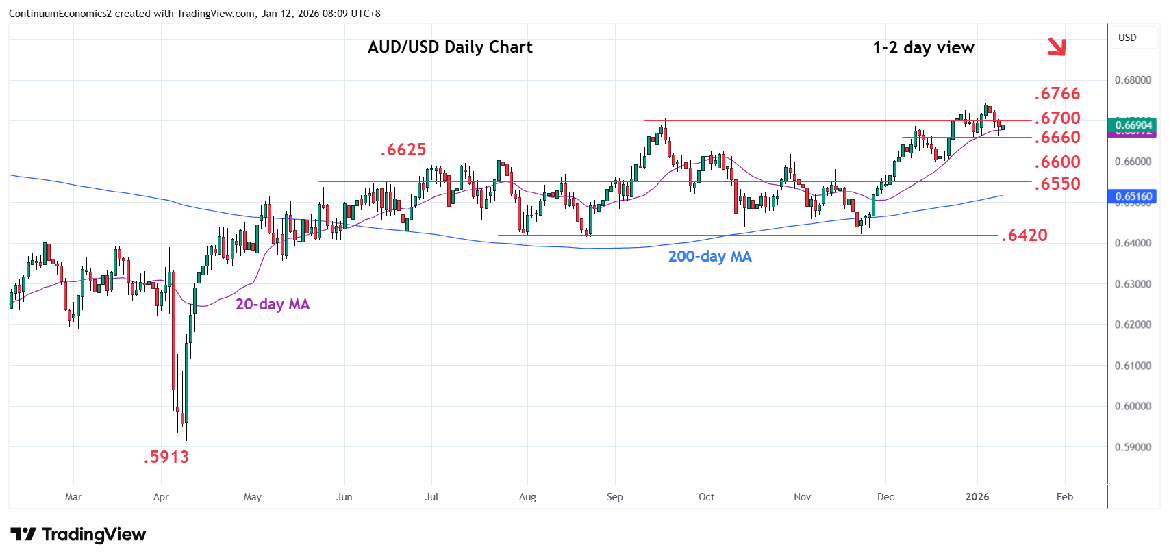 Chart AUD/USD Update: Consolidating above .6660 support, room for lower later
