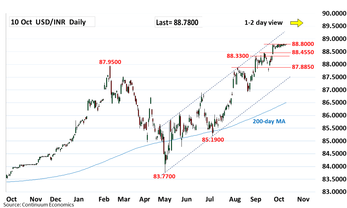 Chart USD/INR Update: Drifting narrowly below 88.8000 high