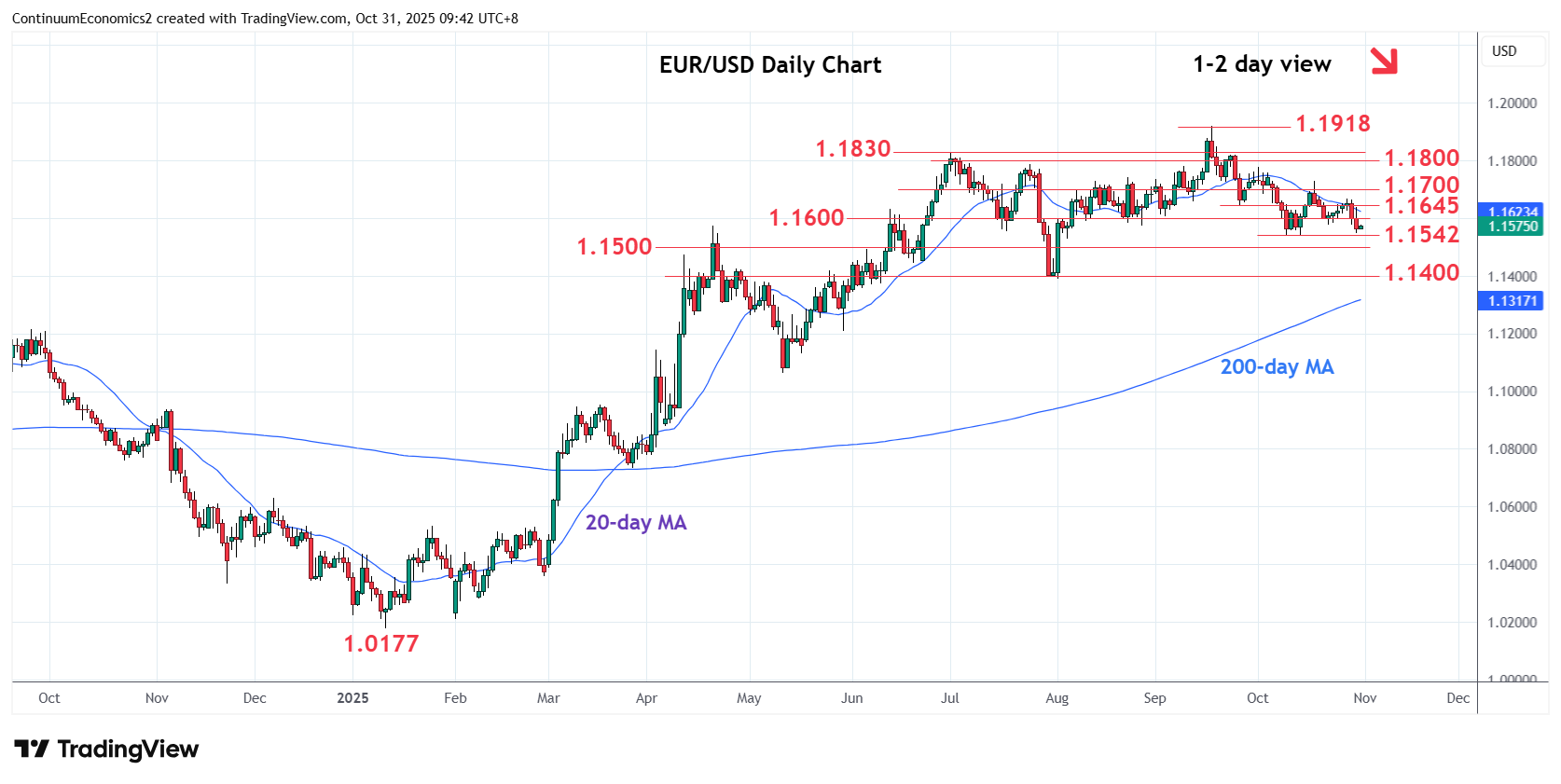Chart EUR/USD Update: Consolidating above 1.1542 support, but still heavy
