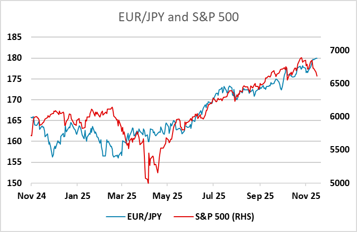 There isn’t a lot else on the calendar, with final Eurozone CPI unlikely to provide any surprises, and the September US employment report on Thursday remains the main focus for this week. However, equity markets will remain a factor, so the Nvidia results due after the close on Wednesday will be a focus. Having said this, the slippage in equity markets in recent data has had very little impact on FX markets, with the JPY continuing to edge lower despite the decline in equities, going against the usual negative correlation between JPY crosses and equities and/or equity risk premia. The language from new Finance Minister Katayama has become increasingly aggressive about excessive JPY weakness, but the Japanese authorities are going to have to put their money where their mouth is to stop the gradual JPY decline. The market will otherwise continue to play grandmother’s footsteps with the BoJ, continually edging the JPY lower awaiting intervention.