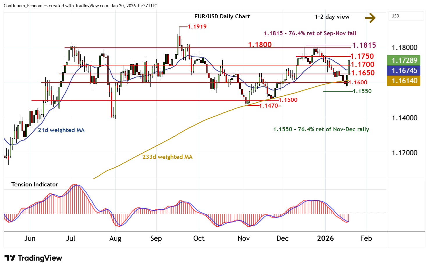 The sharp bounce from 1.1600 has been pushed back from 1.1765