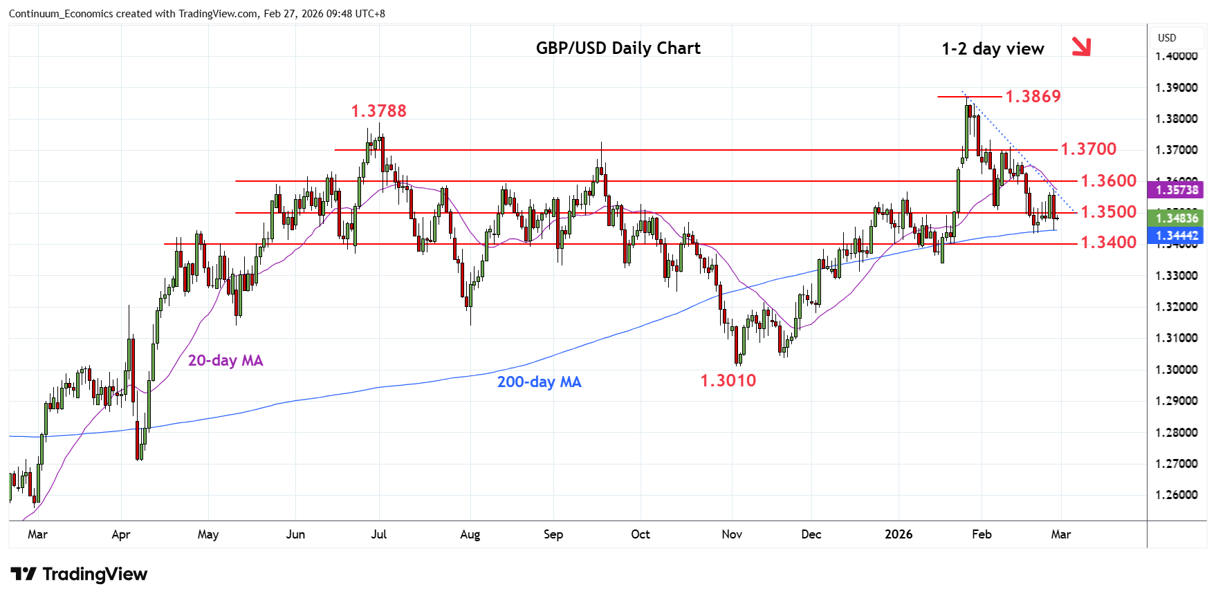 Chart GBP/USD Update: Back to retest 1.3435 low