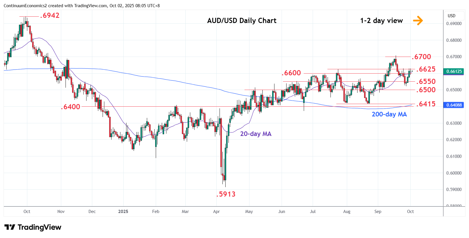 R3 | 0.6700/07 | ** | figure, 17 Sep YTD high | S2 | 0.6520 | ** | 26 Sep low | |