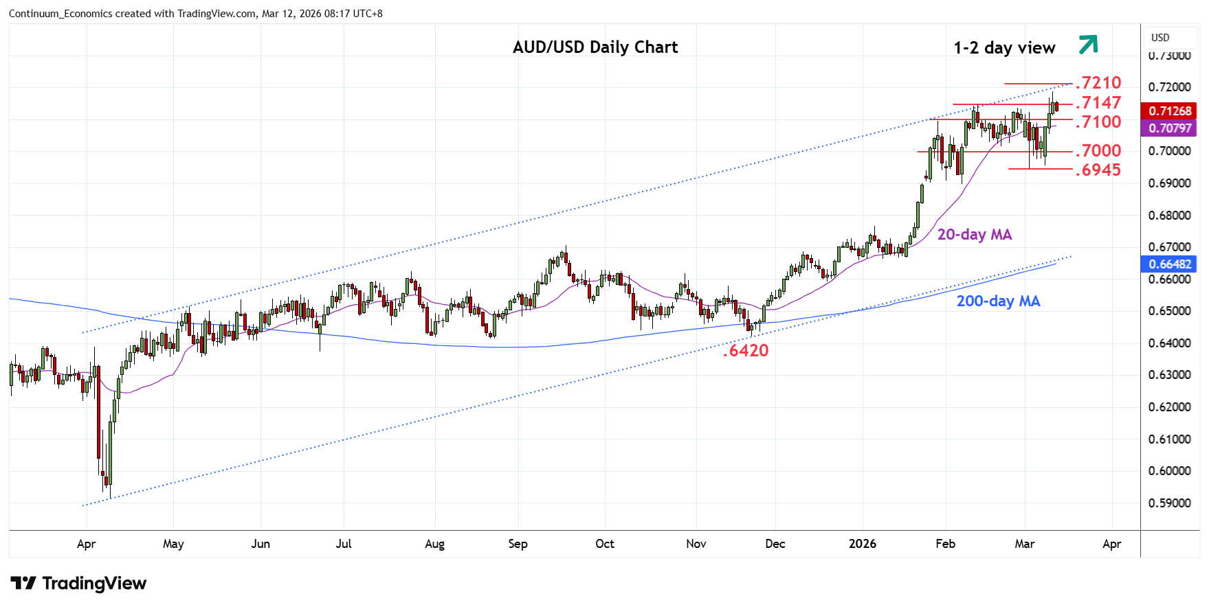 | R1 | 0.7188 | 11 Mar YTD high | S4 | 0.6945 | ** | 3 Mar low |