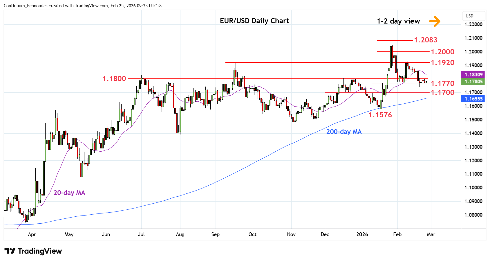 Chart EUR/USD Update: Extend consolidation below 1.1800
