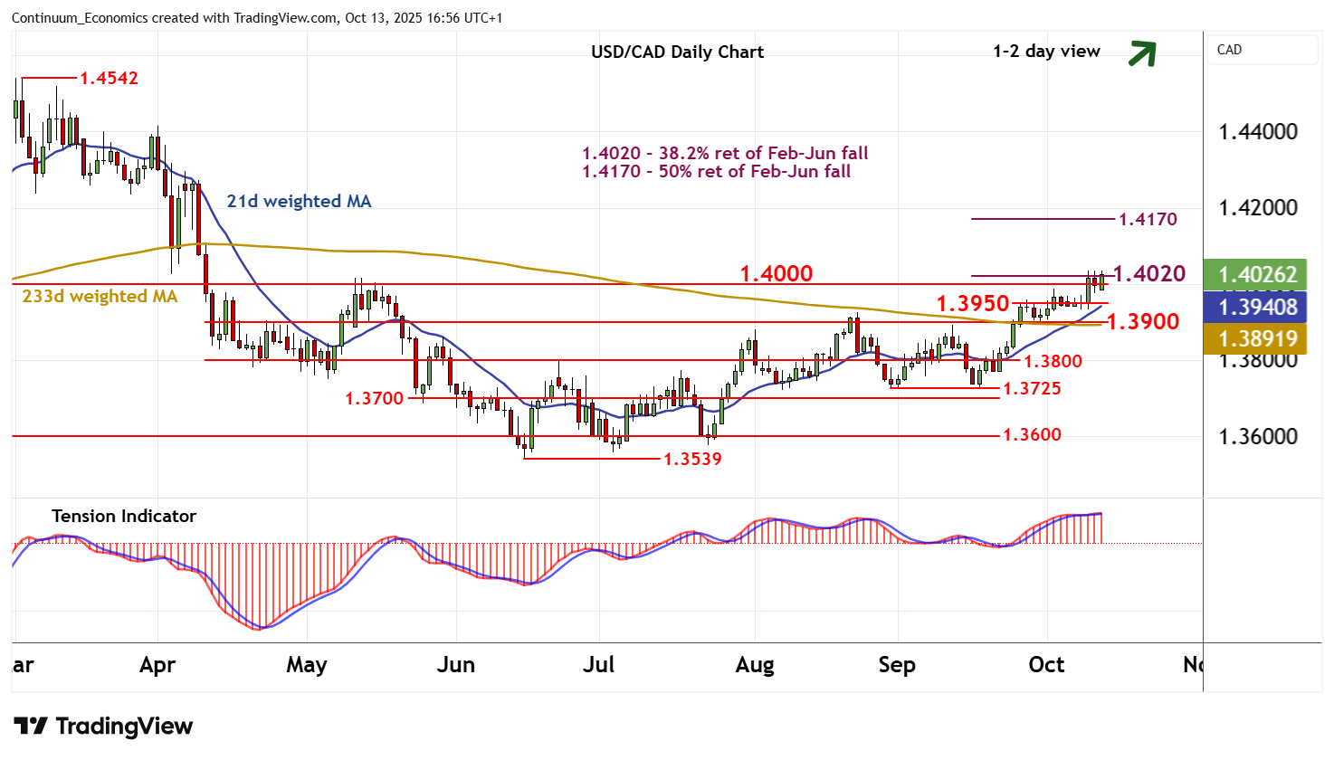 Chart USD/CAD Update: Extending pressure on 1.4000/20 - background studies rising
