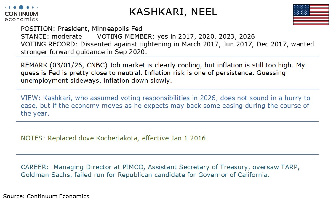 Fed's Kashkari, now a voter, does not sound in a hurry to ease further.