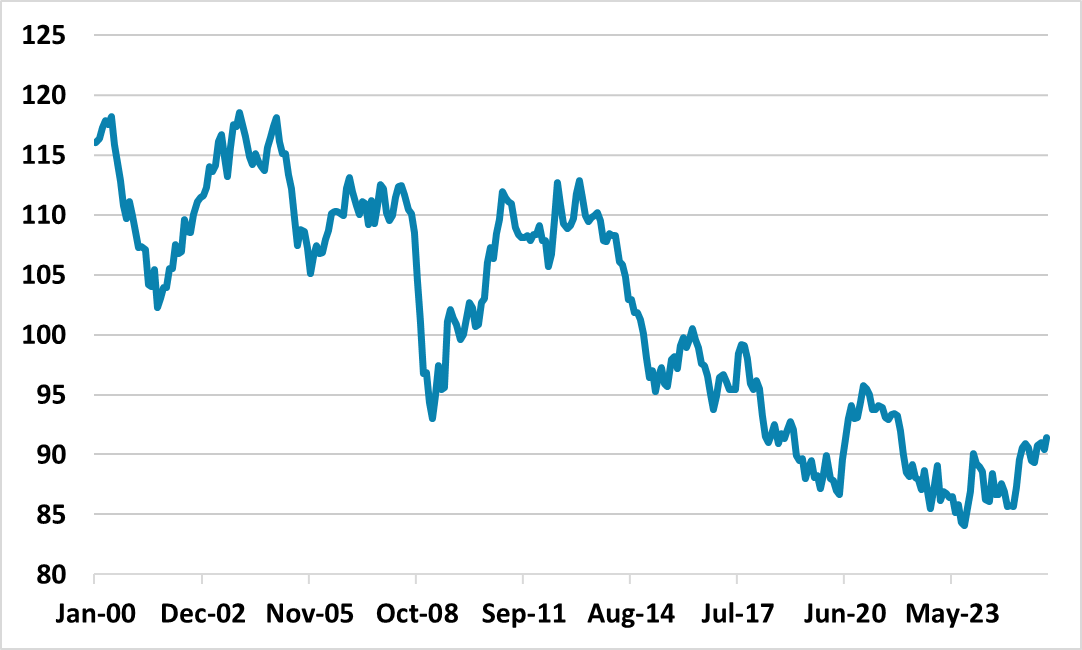 · Rising SEK. The SEK has had a good start to the year appreciating against the EUR as well as a weaker USD. Part of the 2026 story is that some fund managers feel that undervalued currencies can catch up with the EUR/USD move last year. However, though the SEK has been undervalued on a real exchange rate basis (Figure 2), this has tended to be the case in recent years and versus PPP (see DMFX Outlook here). We continue to prefer the higher yielding NOK and forecast EURNOK to 11.00 by end 2026 and NOKSEK to parity.