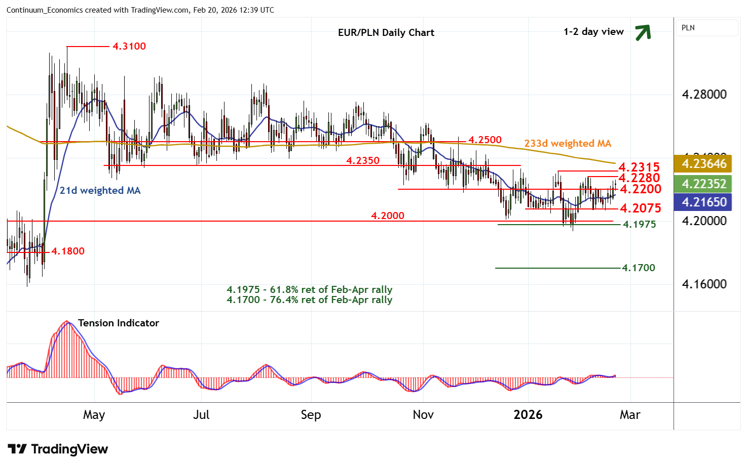 | R1 | 4.2280 | * | 5 Feb (w) high | S4 | 4.1800 | * | congestion |