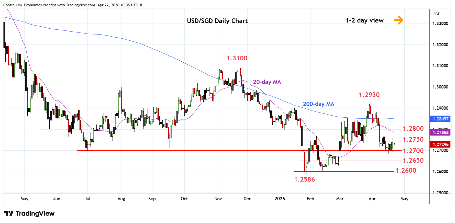 Chart USD/SGD Update: Consolidating above 1.2700 level