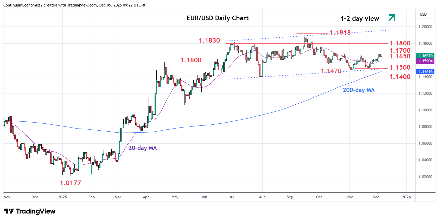 Chart EUR/USD Update: Consolidating at 1.1650, room for higher later