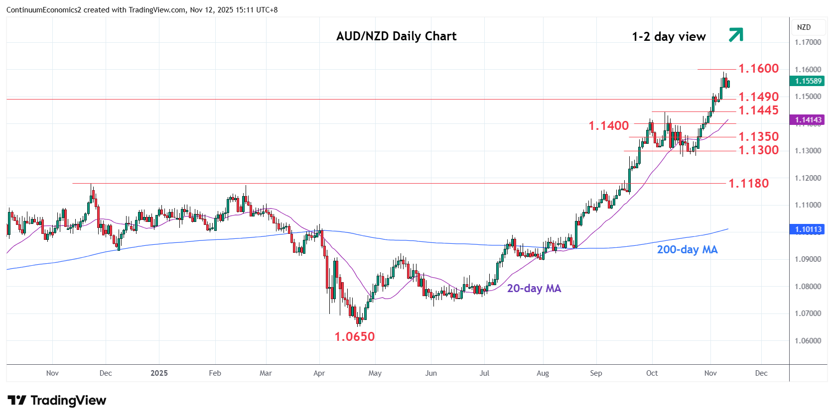 Chart AUD/NZD Update: Lower in range from 1.1590 high