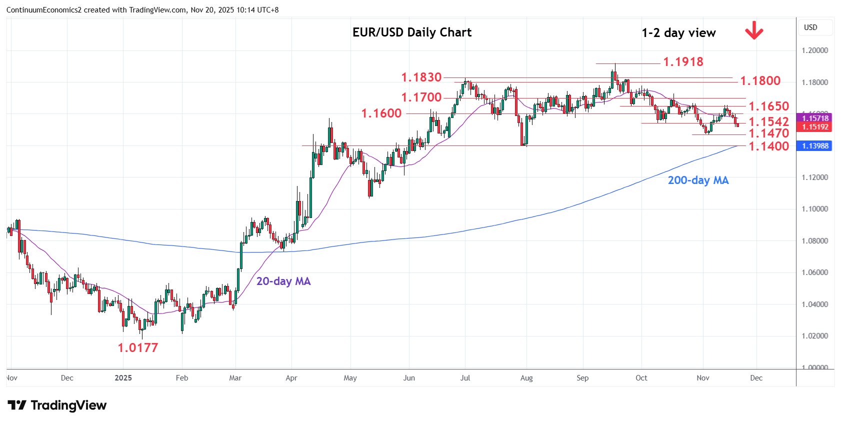 Extending pullback from the 1.1650 congestion area and break of the 1.1542 support turn focus to the 1.1500 level