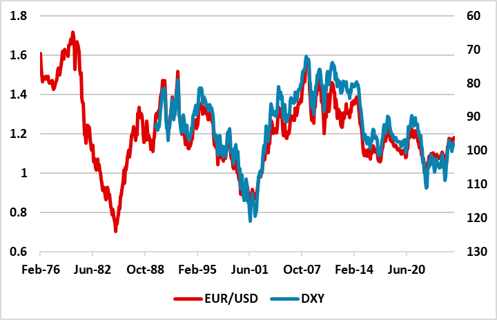 Source: Datastream/Continuum Economics (nb Imputed EUR/USD before 1999)