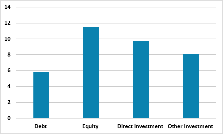 Figure 3: Equity Transaction Outflows and Inflows Into EZ (EUR Blns)