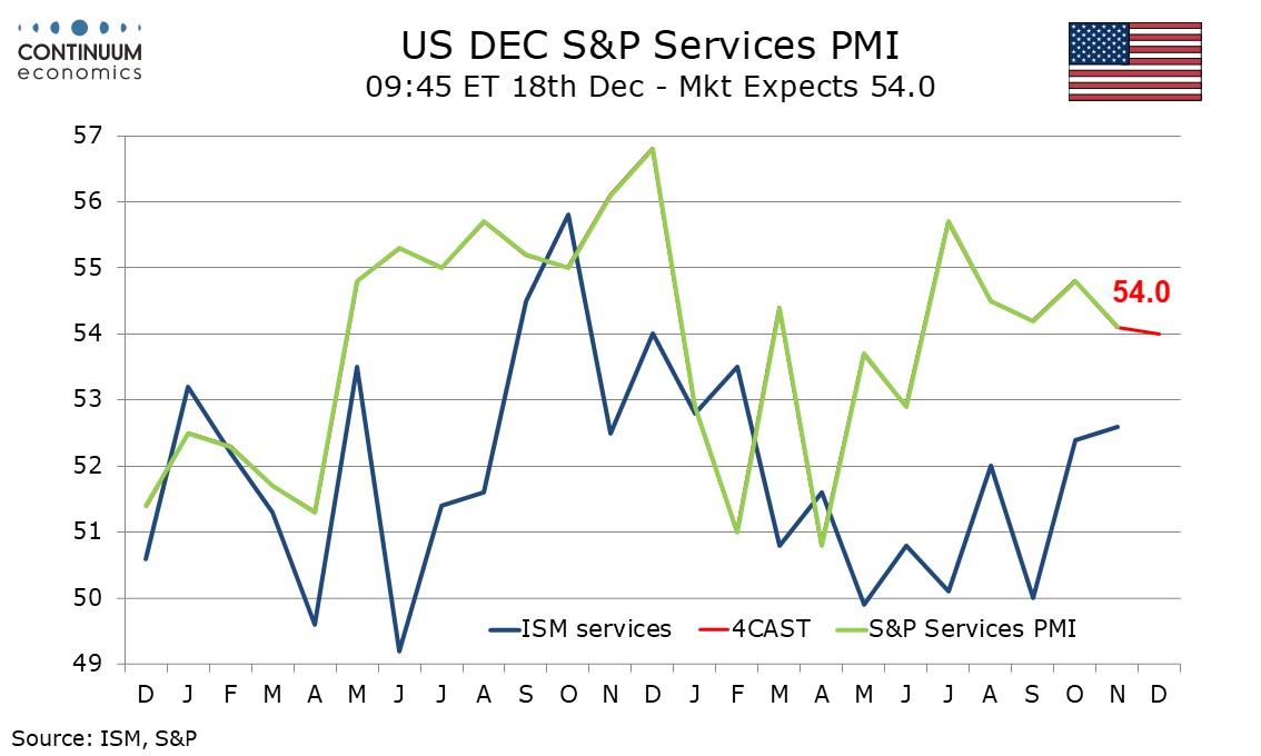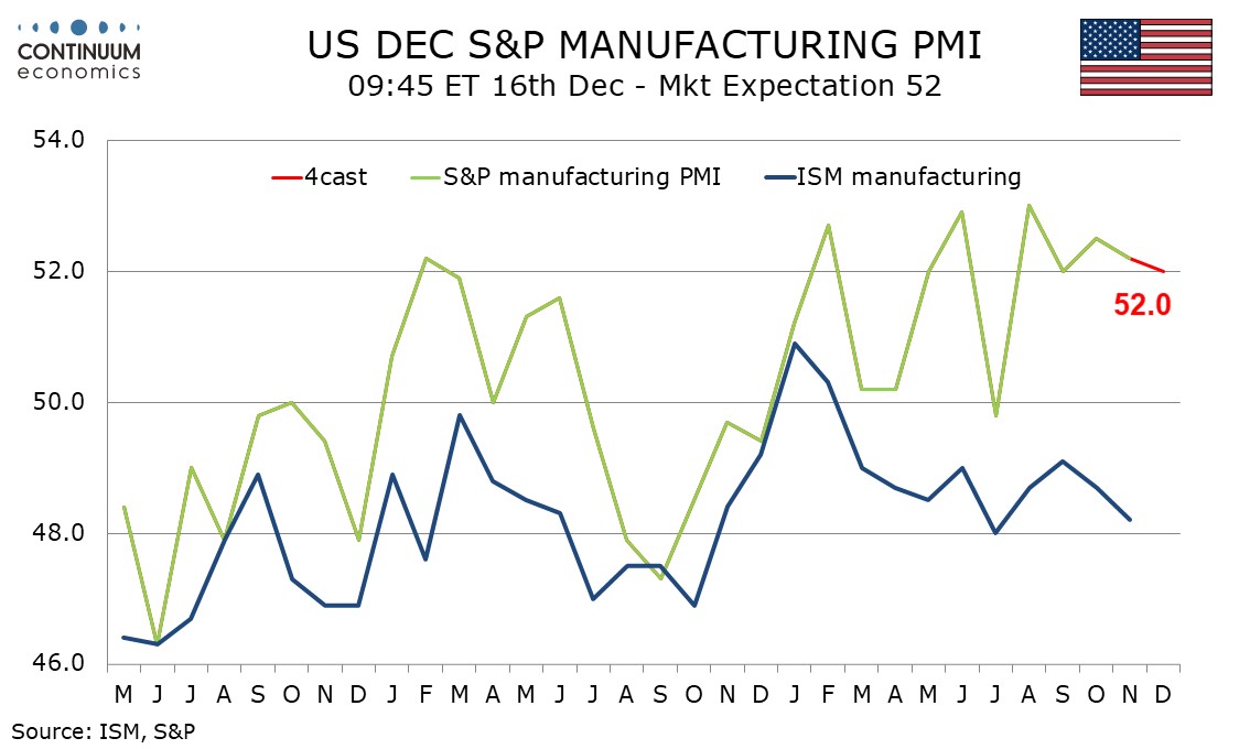 Preview: Due December 16 - U.S. December S and P PMIs - Only marginally lower, still healthy