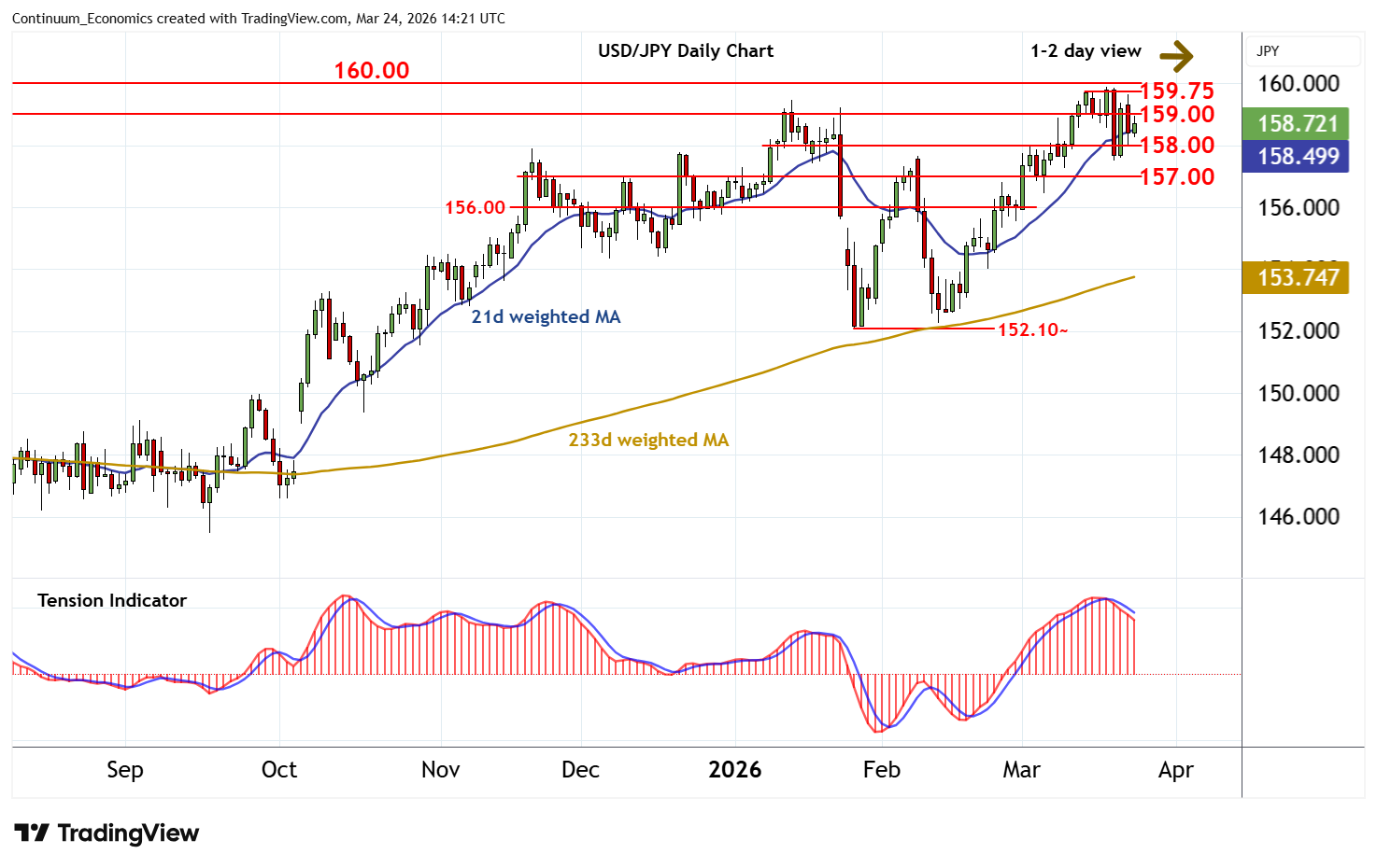 Little change, as prices extend cautious trade within the 158.00 - 159.00 range