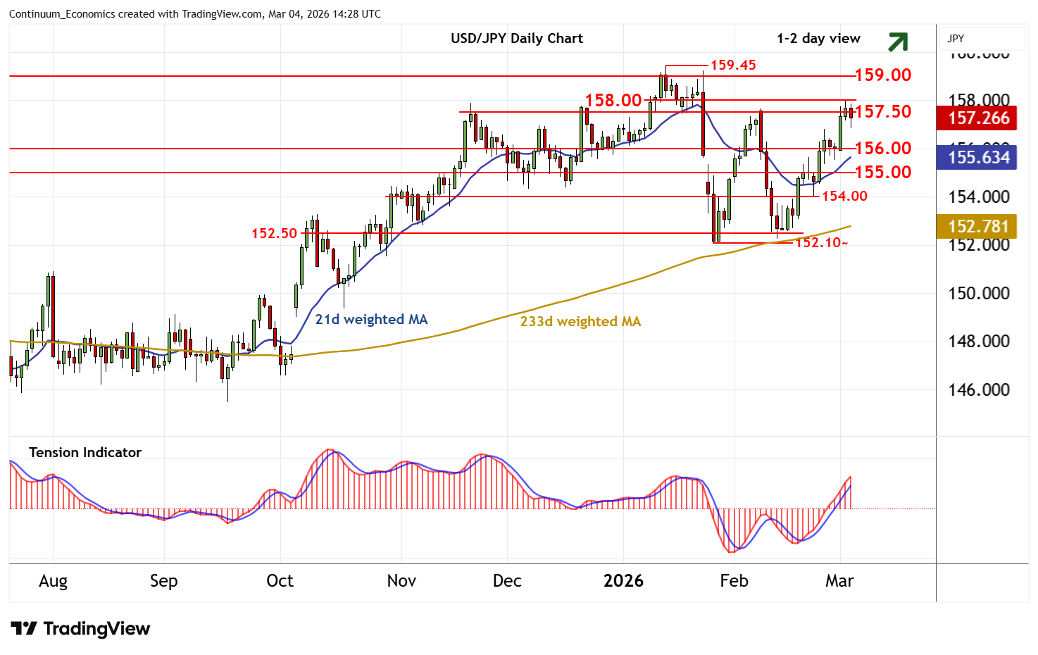 | R4 | 159.45 | ** | 14 Jan YTD high | S1 | 156.00 | * | congestion | |
