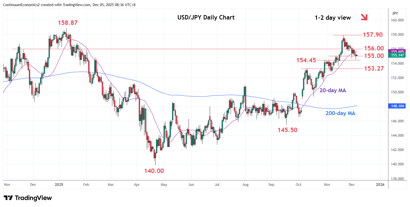 Chart USD/JPY Update: Under pressure, but still limited below 155.00