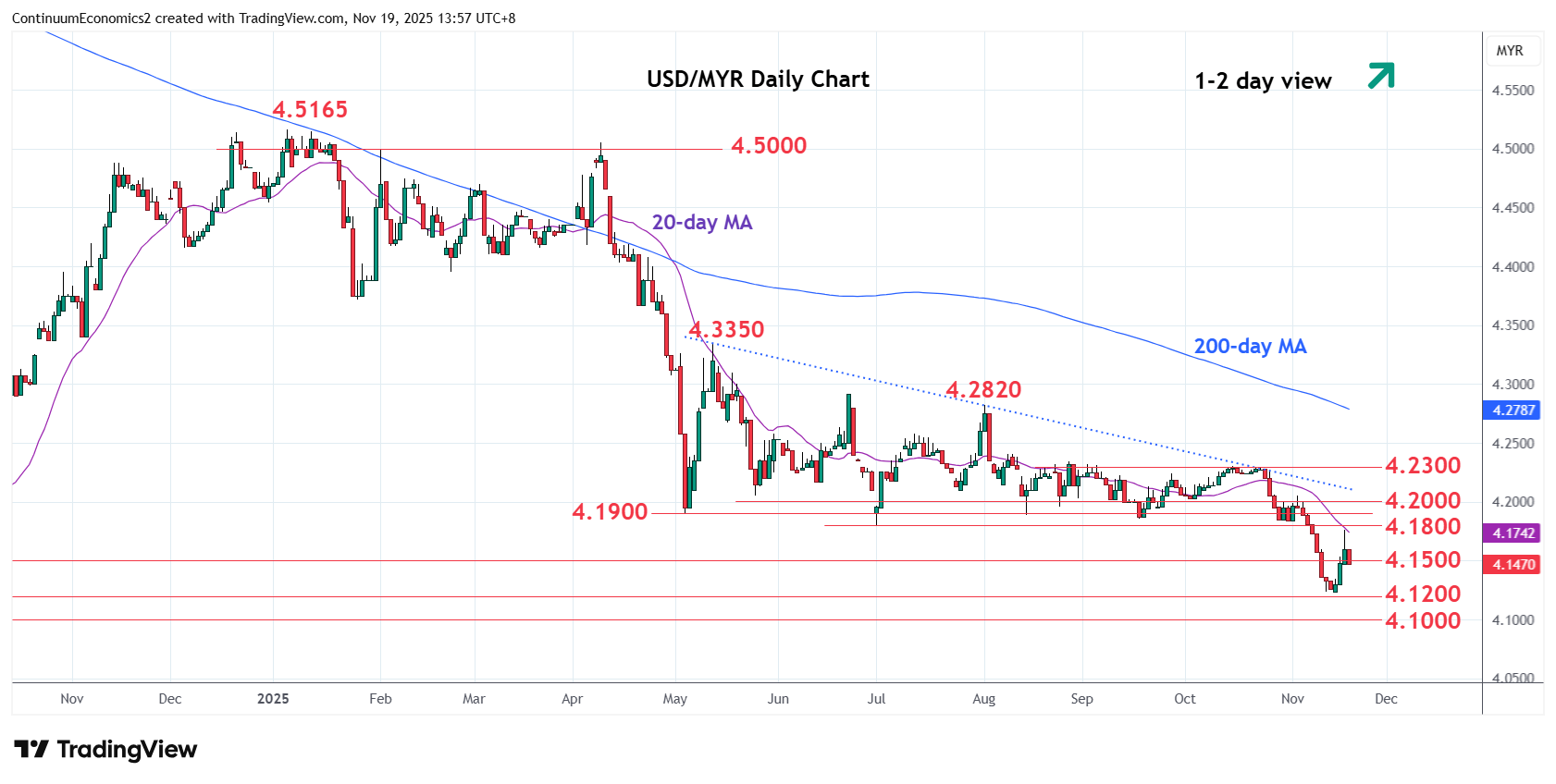 Chart USD/MYR Update: Consolidating, room to extend corrective bounce later