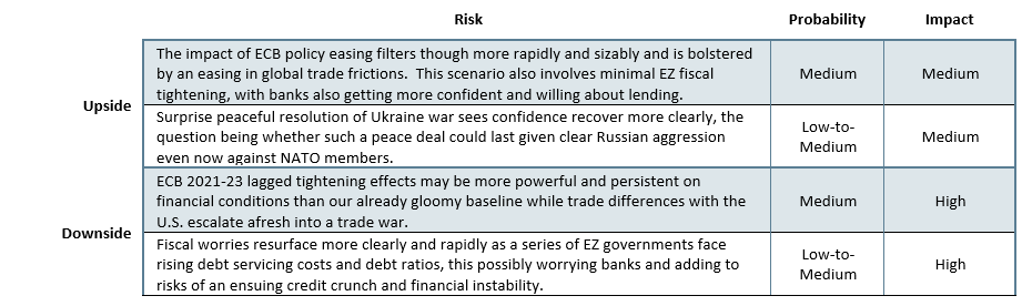· Details of the well-flagged fiscal expansion are still unclear but we feel it may be less sizeable, take longer to exercise and be less broadly spread across the EZ especially given challenging fiscal positions in many EZ economies. A fiscal crisis is not a given but financial conditions may remain tighter for longer than otherwise!