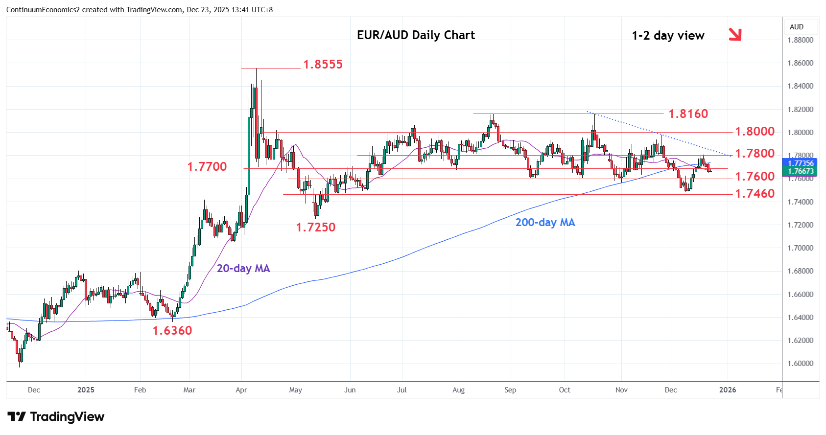 Chart EUR/AUD Update: Extending pullback from 1.7800/20 resistance