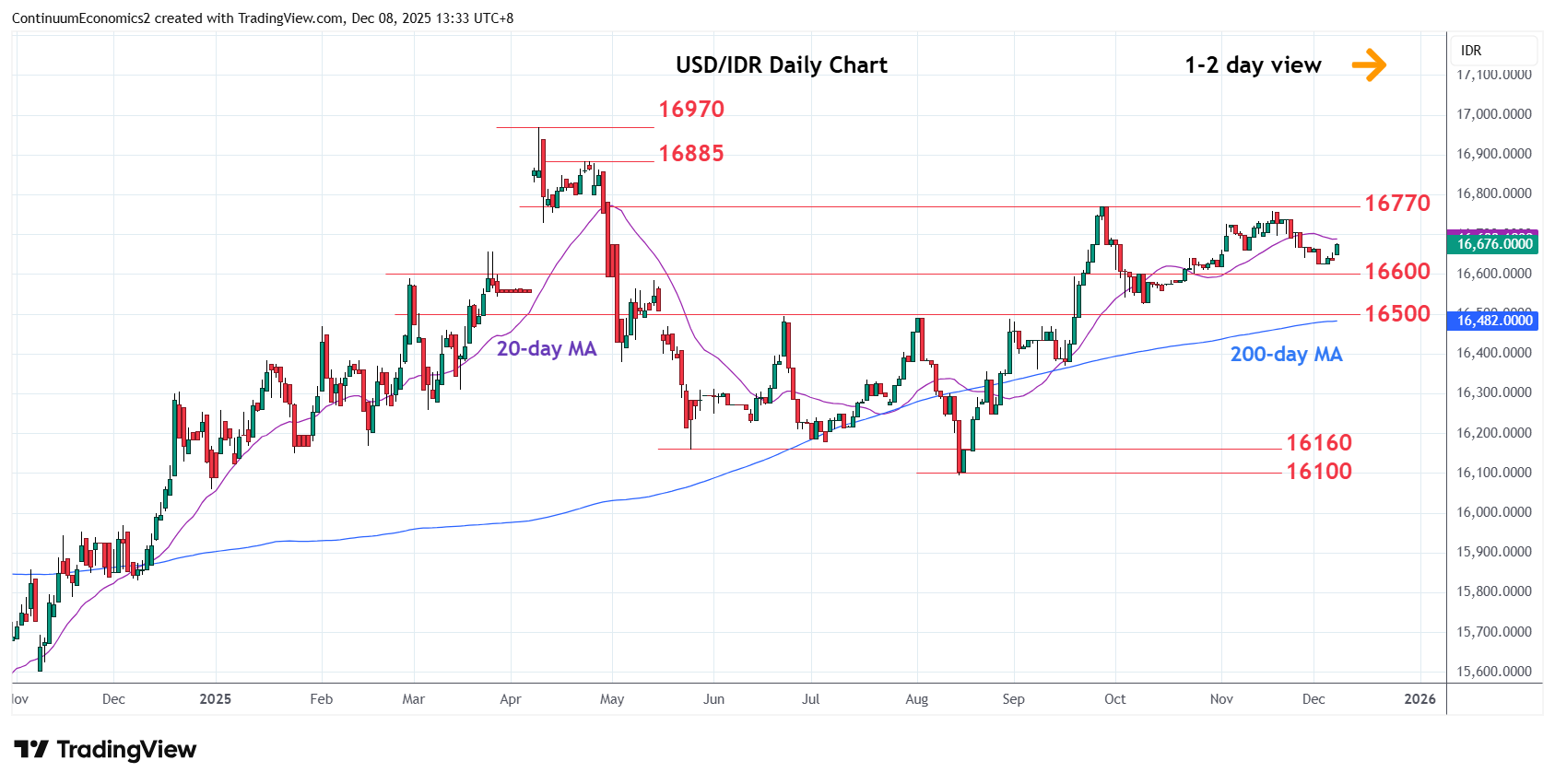 Chart USD/IDR Updates: Higher in consolidation above 16600 support