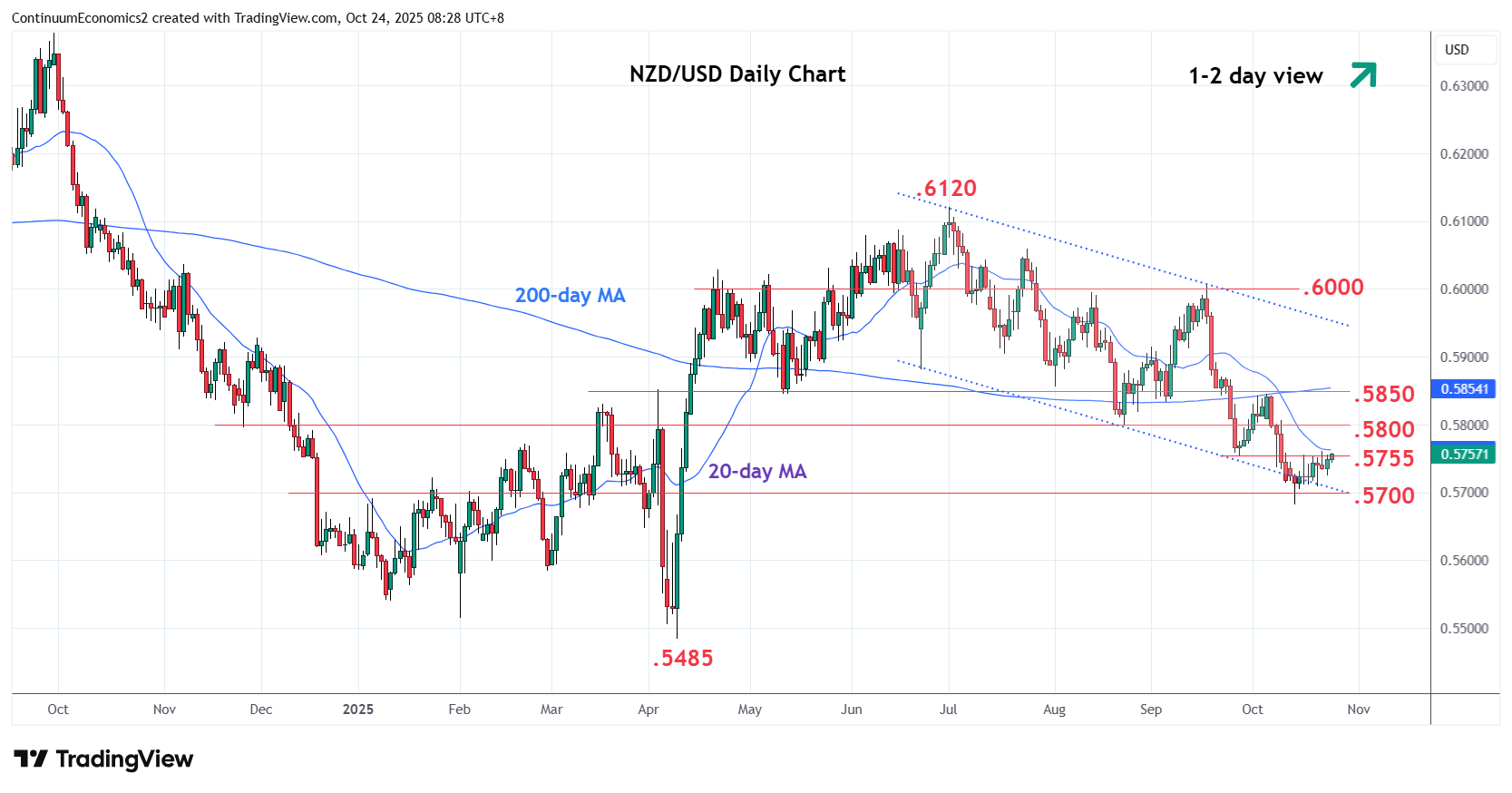 Edging higher from the .5683 low of 14 October to pressure the .5755 resistance