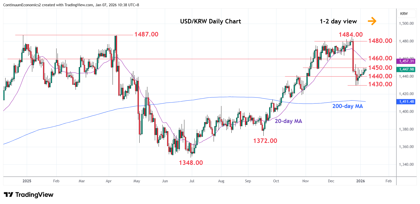 Chart USD/KRW Update: Corrective gains pressuring 1450.00 resistance