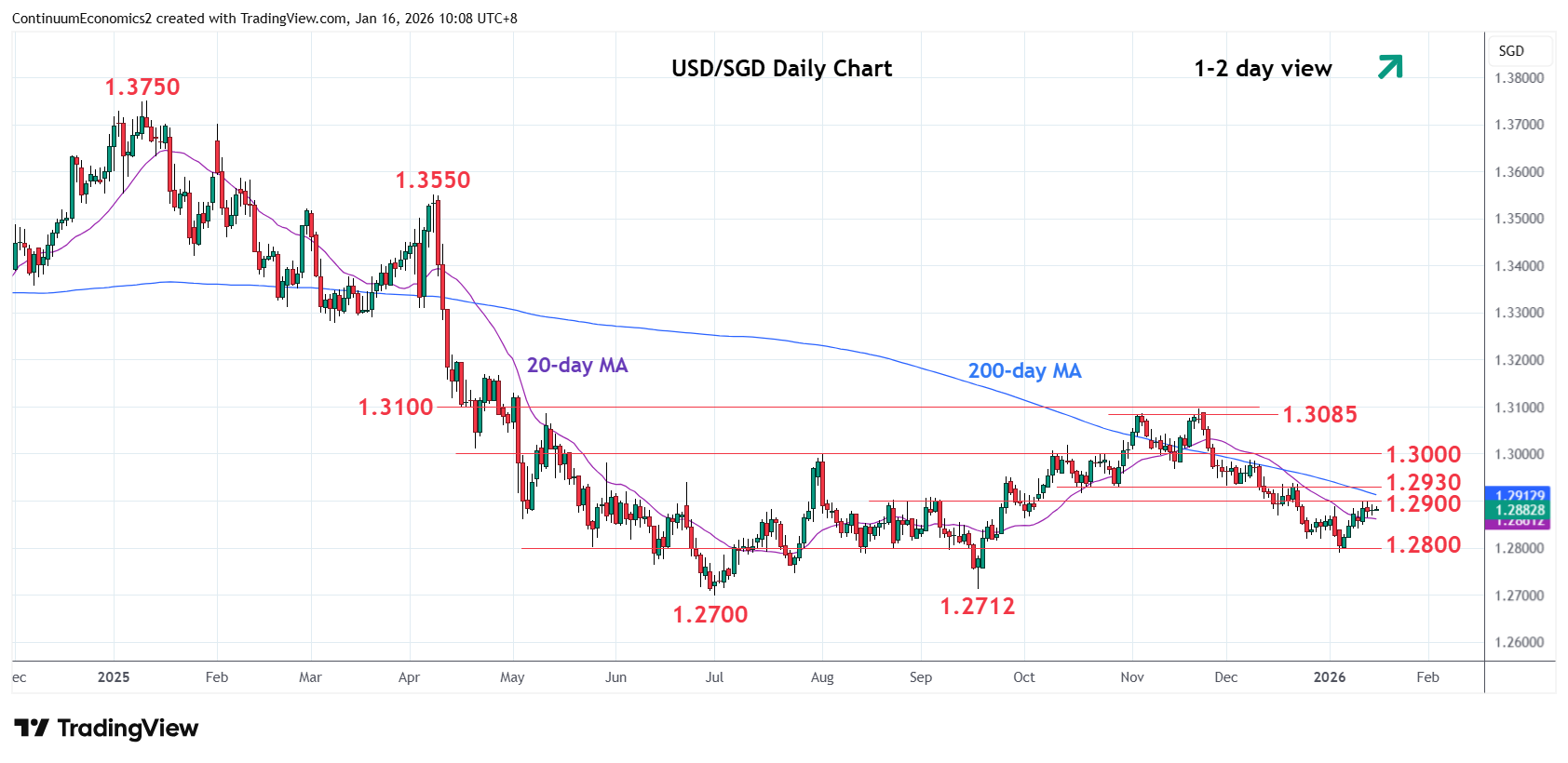 Chart USD/SGD Update: Consolidating below 1.2900, scope for break