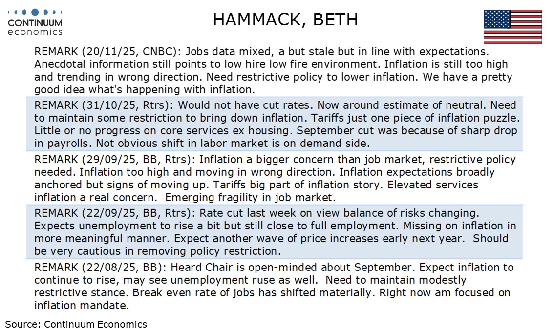 Cleveland Fed President Hammack remains hawkish and has a vote this year.
