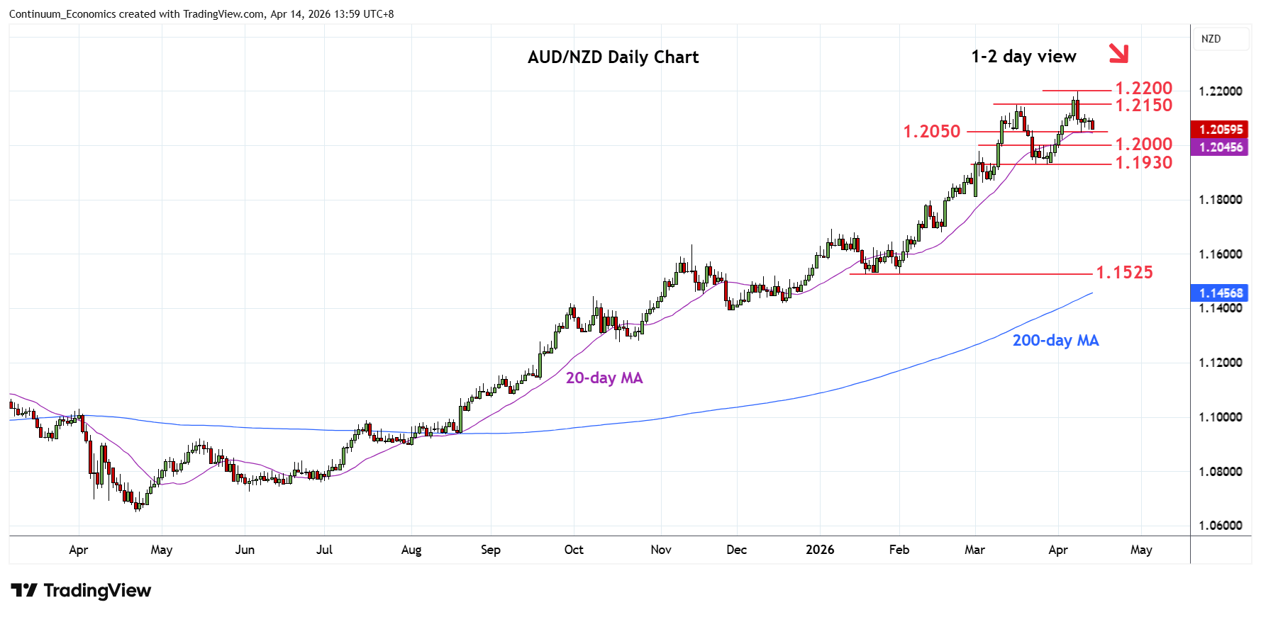 06:45 GMT - Extending pullback from the 8 April current year high at 1.2200 to pressure support at the 1.2050 congestion as daily studies unwind overbought readings. Below this will see room for deeper pullback to the 1.2000 figure. Lower still, turn focus to strong support at 1.1930 low of 27 March which is expected to underpin. Break here will weaken and turn focus to the downside to retrace gains from the April 2025 year low. Meanwhile, resistance is lowered to the 1.2100/1.2150 congestion and March high. Clearance here is needed to expose the 1.2200 high to retest and further extend the broader gains from 2020 year low.