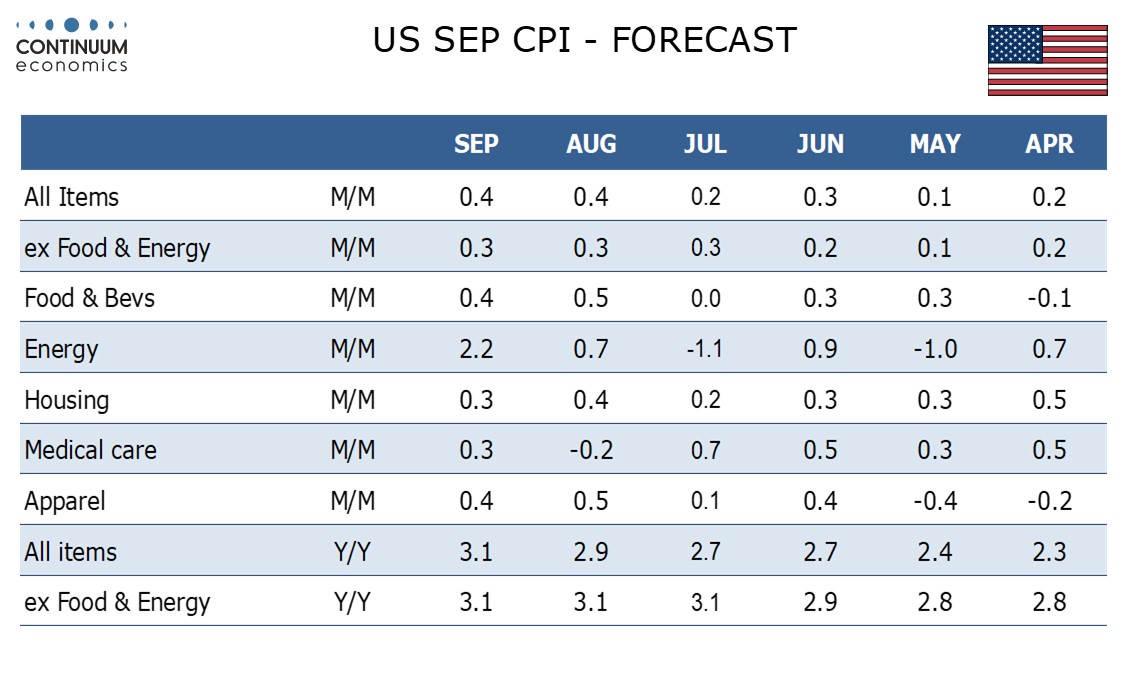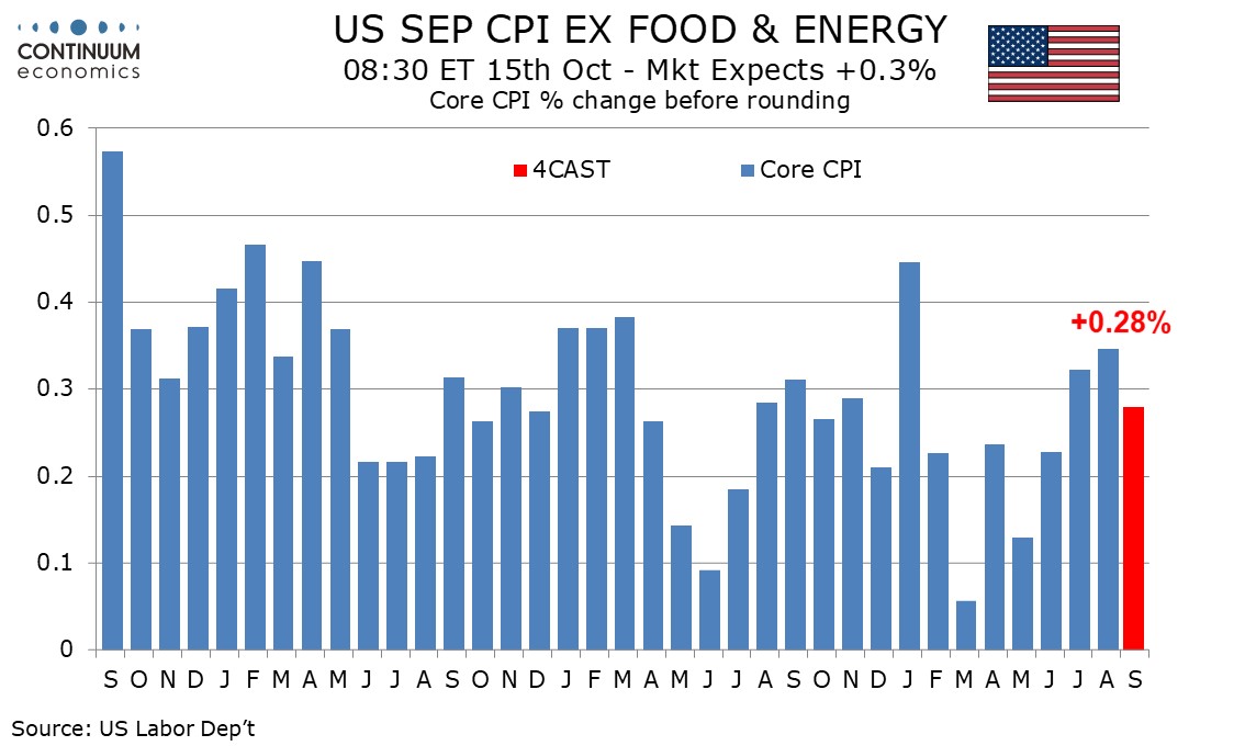 Preview: Due October 15 (dependent on shutdown ending) - U.S. September CPI - Firm but a little less so in core rate